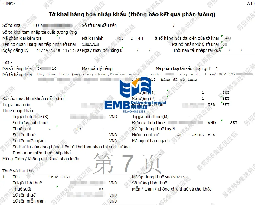 1、使用年限:越南对二手工业设备进口有明确限制,需提前确认设备是否在《越南禁止 / 限制进口商品目录》外,且使用年限需符合越南规定(通常机械类不超过 10 年,具体以 HS 编码对应的监管要求为准),超年限设备可能直接被拒。